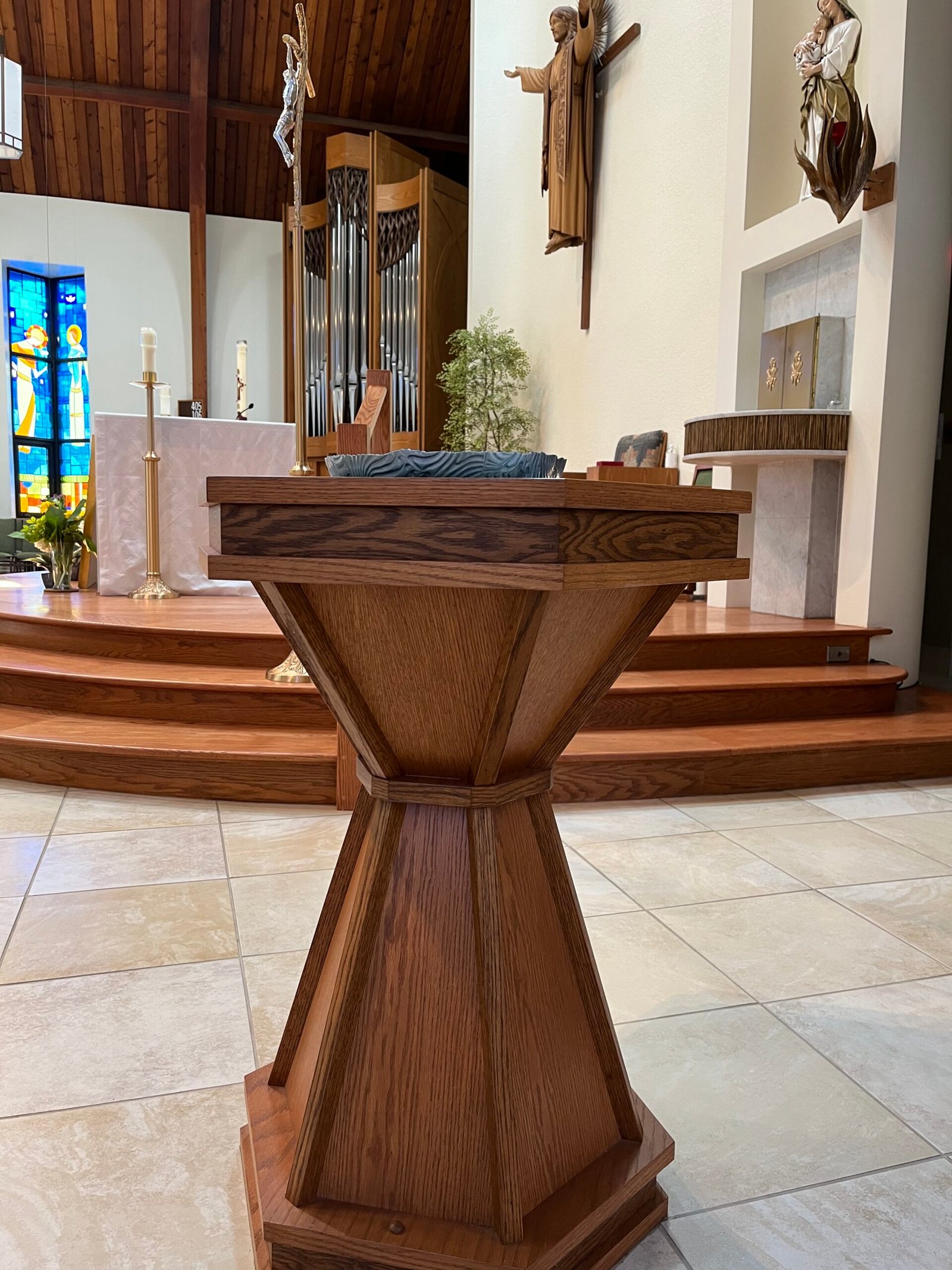 • Pick up a baptismal registration form from the church entrance and submit it to the parish office.